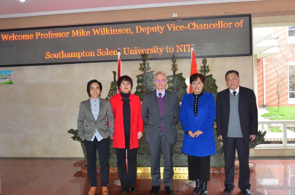 3月21日下午,英国南安普顿索伦特大学副校长Mike Wilkinson教授、国际部教师Sunny Deng一行2人来访我校洽谈两校合作办学事宜。校长刘荣英、副校长张铟、国际交流合作处处长聂鉴锋参加了会谈。