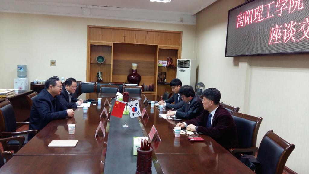 3月17日上午,韩国京畿大学研究生院院长宋泰镐、国际交流处处长南景铉、国际交流处教授刘子阳一行3人来访我校洽谈两校合作办学事宜。副校长张世海、国际交流合作处处长聂鉴锋参加了会谈。