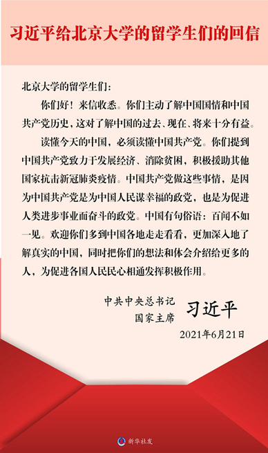 来自乌兹别克斯坦的国际贸易专业学生约翰说,中国在全球性新冠病毒疫情下能够获得疫情控制和经济发展的成功正是中国共产党率领中国人民顽强拼搏的结果,2020年的疫情我没有回国,但是这里让我感觉到家一样的温暖,在这里我感到特别的安全。我感谢中国,中国已经成为我的第二故乡。我想真诚地送上一句话:祝中国共产党一百岁生日快乐!