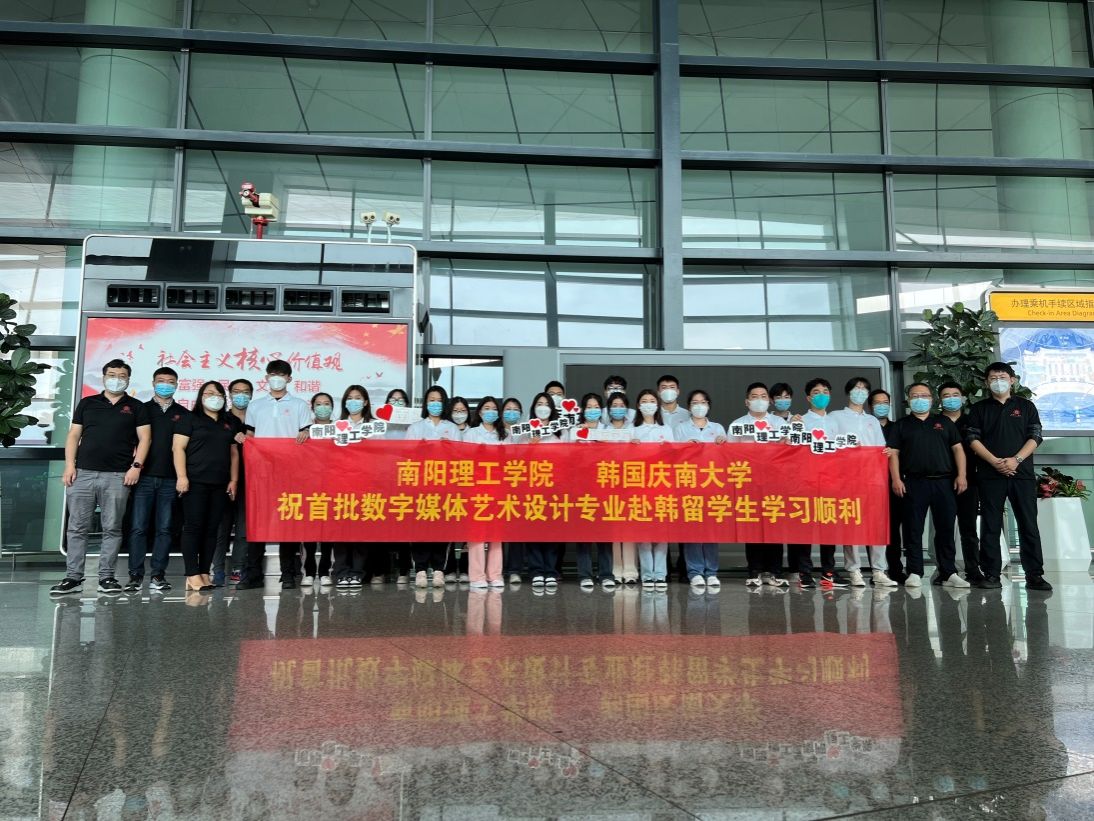 在新郑国际机场欢送“南阳理工学院与韩国庆南大学合作举办数字媒体艺术设计专业中外合作办学项目”首批毕业生赴韩国学习