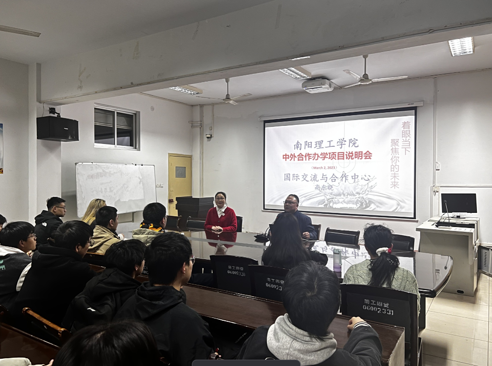 2023年3月3日和4日,国际交流合作中心分别在生物与化学工程学院和智能制造学院召开了南阳理工学院与新西兰惠灵顿维多利亚大学合作办学项目宣讲会、南阳理工学院与英国北安普顿大学合作办学项目宣讲会。宣讲会由国际交流合作中心主任高东晓主持,项目合作单位郑州志成留学贾英杰老师主讲,生化学院、范蠡商学院与智能制造学院出国班学生和辅导员老师参加了会议。
