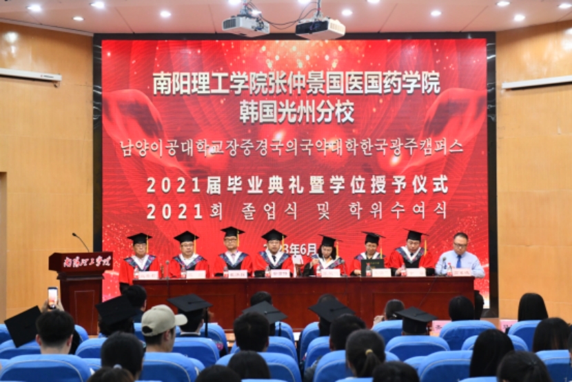 6月5日下午,我校在领创空间二楼报告厅举行来华留学生毕业典礼暨学位授予仪式。校长安士伟、副校长张爱红,张仲景国医国药学院、国际交流合作中心负责同志以及张仲景国医国药学院学位评定分委员会委员出席仪式,韩国光州分校毕业生参加仪式。