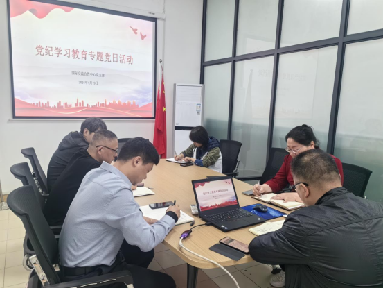 4月19日上午,国际交流合作中心党支部开展了党纪教育主题党日活动。活动由支部书记高东晓主持,中心全体教师参加活动。